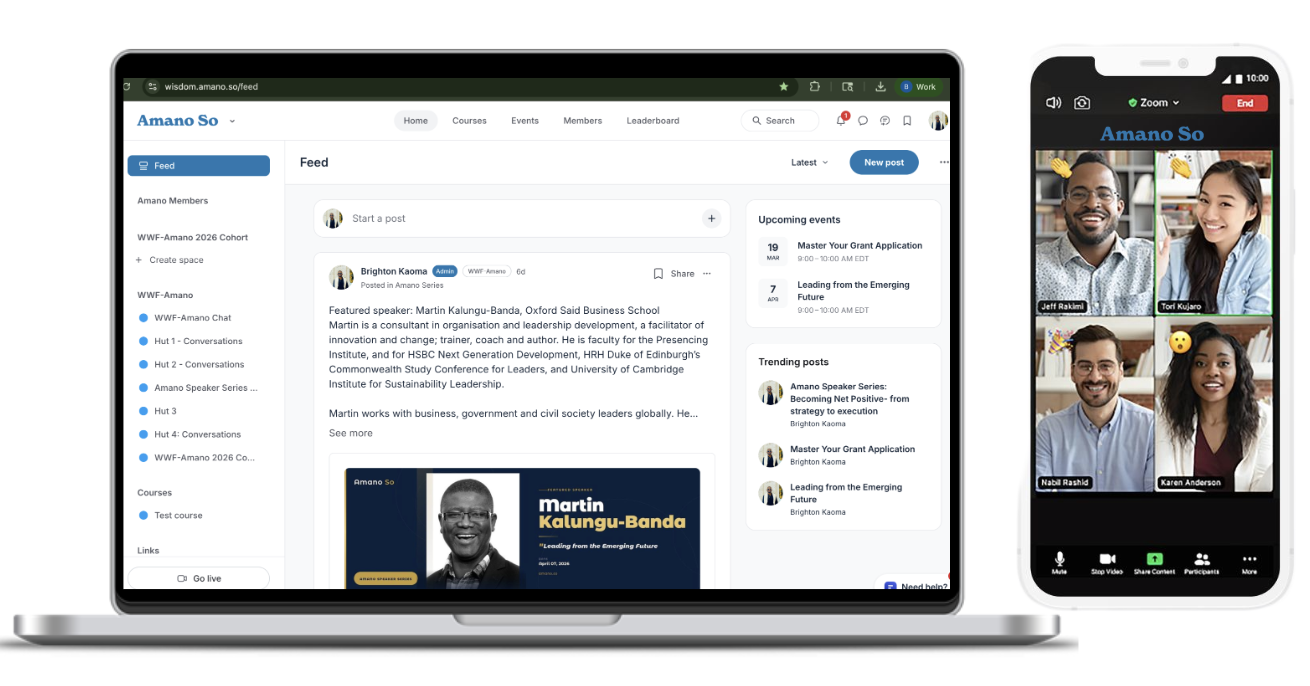 TRUSTED BY GLOBAL ORGANIZATIONS WORLDWIDE Amano So is the global community of ambitious leaders working on the challenges that matter most — in the communities, ecosystems, and institutions where real change happens.